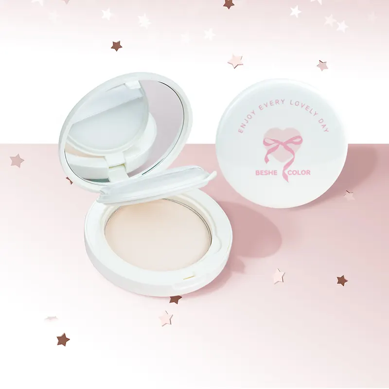 Aplique com uma escova de pó ou uma sopa de maquiagem fornecida. Poeira levemente sobre o seu rosto maquiagem